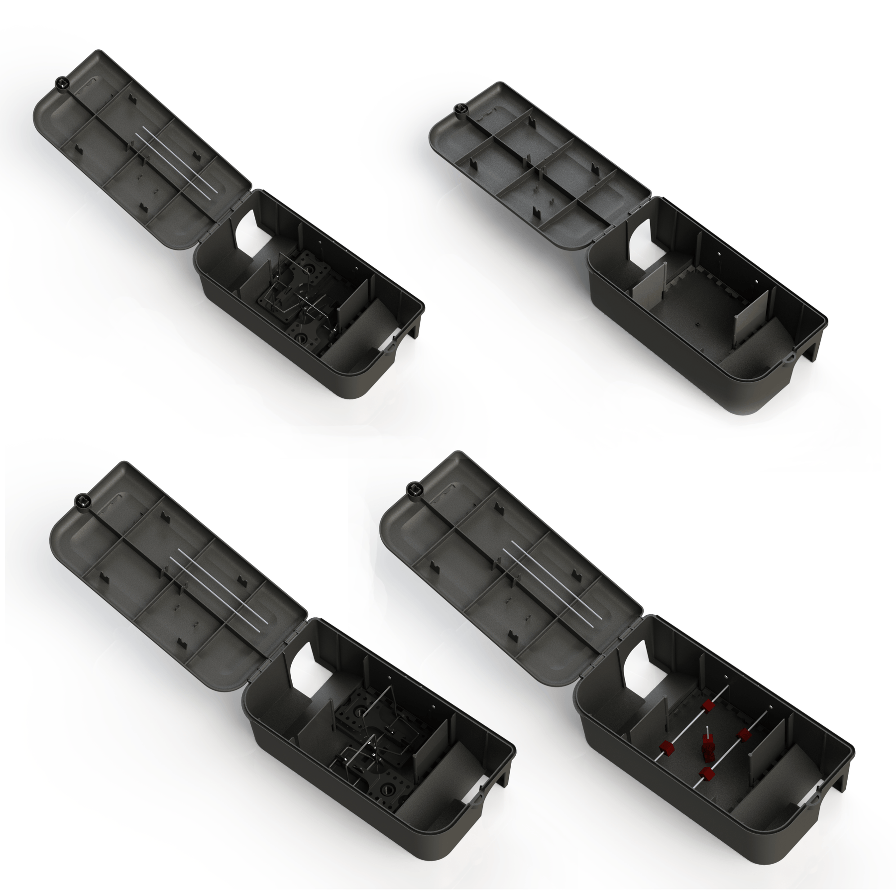 Plokščia, sandari masalų zona talpina daugumą rinkoje naudojamų rodenticidinių formų, o užpildymo žymos palengvina priežiūrą ir kontrolę. Integruotas serviso kortelės laikiklis leidžia patogiai vykdyti dokumentaciją pagal HACCP ir profesionalios kenkėjų kontrolės standartus.