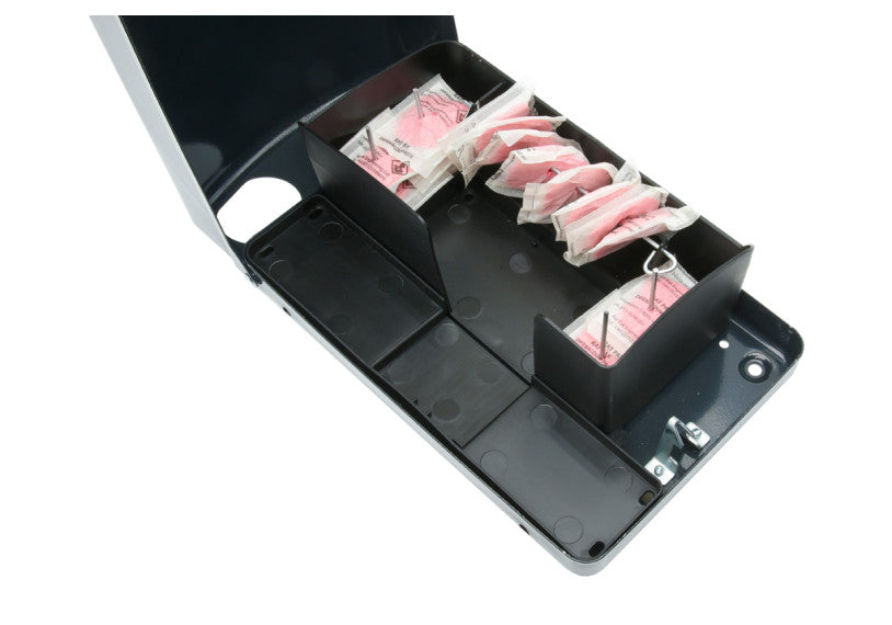 Unikalus viršutinis rakinimo mechanizmas (top-key lock) leidžia technikams greitai ir patogiai aptarnauti stotelę, kartu užtikrinant maksimalų masalo saugumą ir atitiktį teisės aktams. Tai ne tik masalų dėžė, o pilnai inžinerinė graužikų kontrolės sistema, sukurta darbui aukšto spaudimo objektuose.